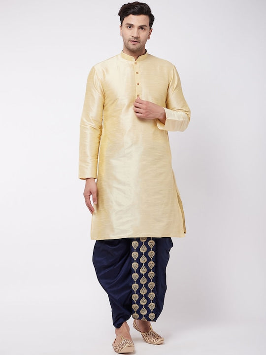 Vastramay Men Gold-Toned Kurta with Dhoti Pants