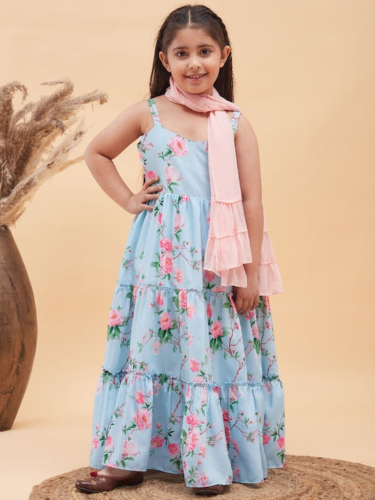 Vastramay Muslin Floral Printed Anarkali Ethnic Dress & Dupatta