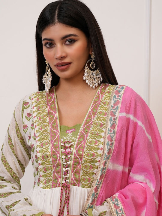 Vishudh Anarkali Embroidered Dress With Printed Dupata
