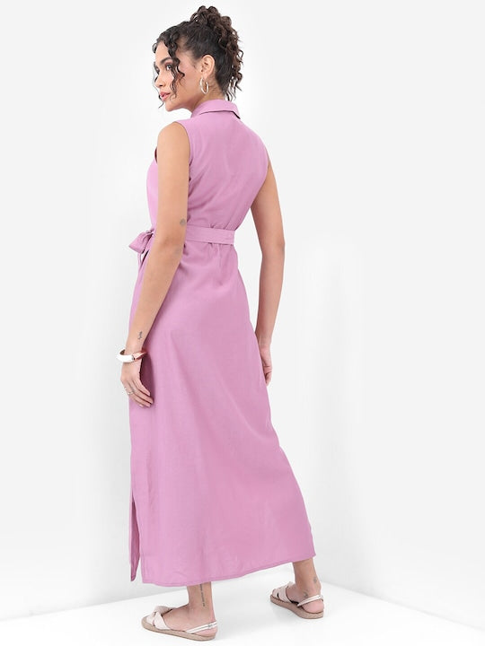 Vishudh Mauve Solid Printed A-Line Maxi Dress