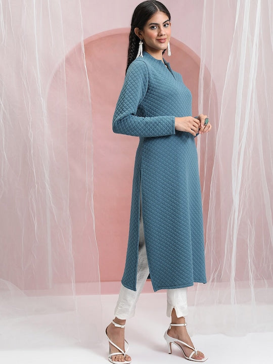 Vishudh Quilted Mandarin Collar Straight Kurta