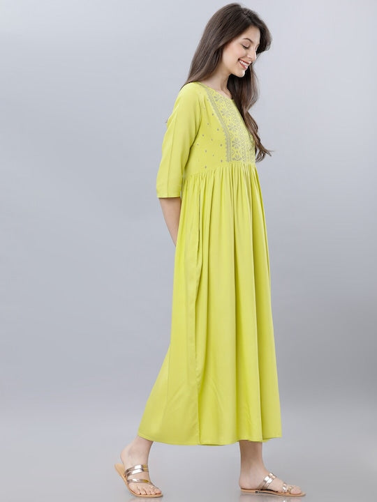 Vishudh Women Lime Green Embroidered Maxi Dress