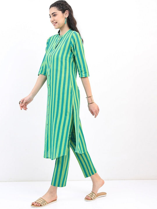 Vishudh Women Striped Cotton Kurta