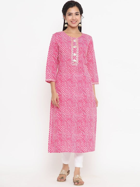 Yufta Women Leheriya Printed Gotta Patti Kurta